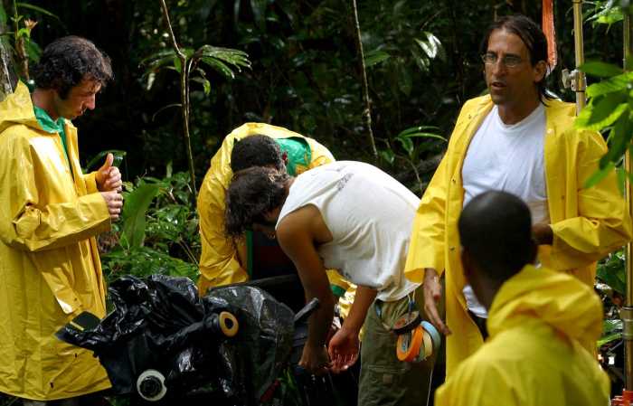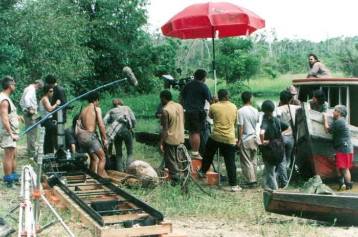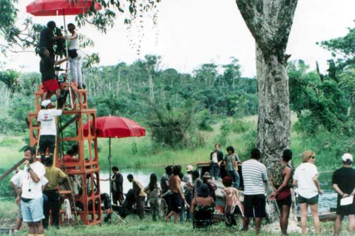 As filmagens concentraram-se em Marituba, na antiga Fazenda Pirelli, onde 90 profissionais ergueram uma vila cenográfica completa com 60 casas, igreja e centro comunitário para replicar a comunidade de Caianos. A logística foi um embate à parte: as chuvas amazônicas de 2002 destruíram estradas, obrigando a produção a usar balsas e barcos para transportar equipamentos de Belém. Um dos momentos mais engenhosos foi a recriação de um helicóptero militar UH1H. Sem auxílio do Exército, a produção obteve um aparelho civil quebrado do Governo de Roraima, que foi reformado e içado por guindastes, recebendo acabamento de voo via computação gráfica.